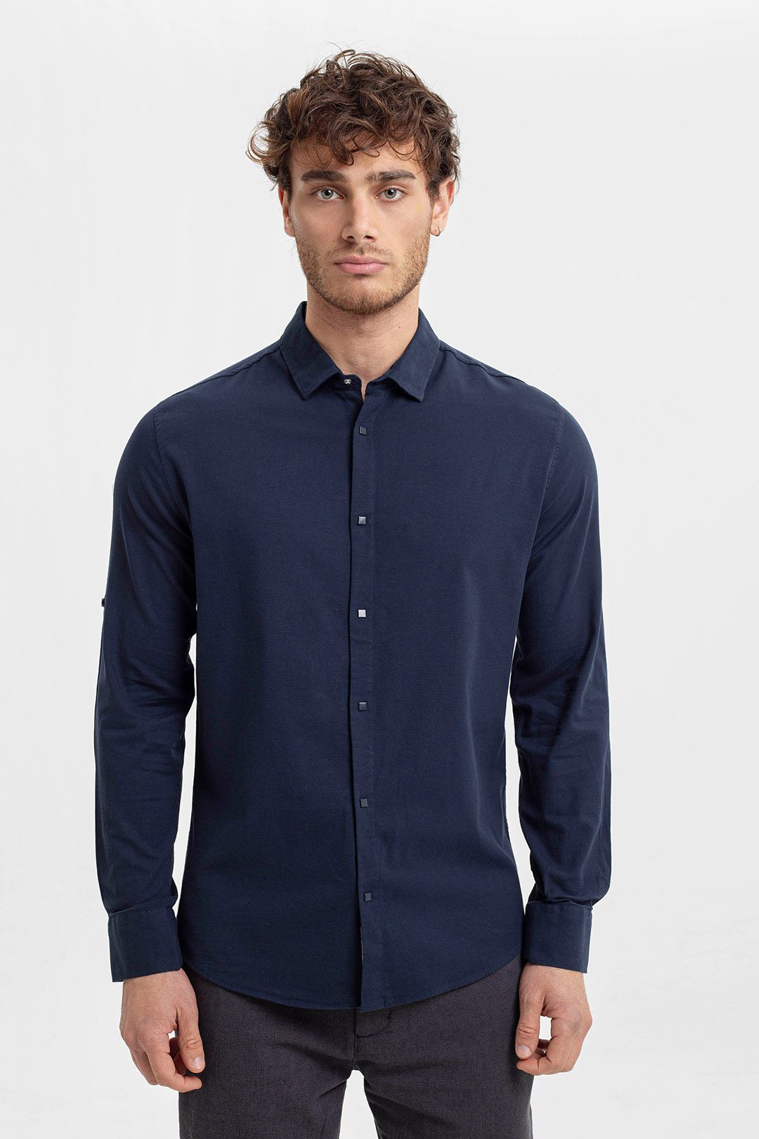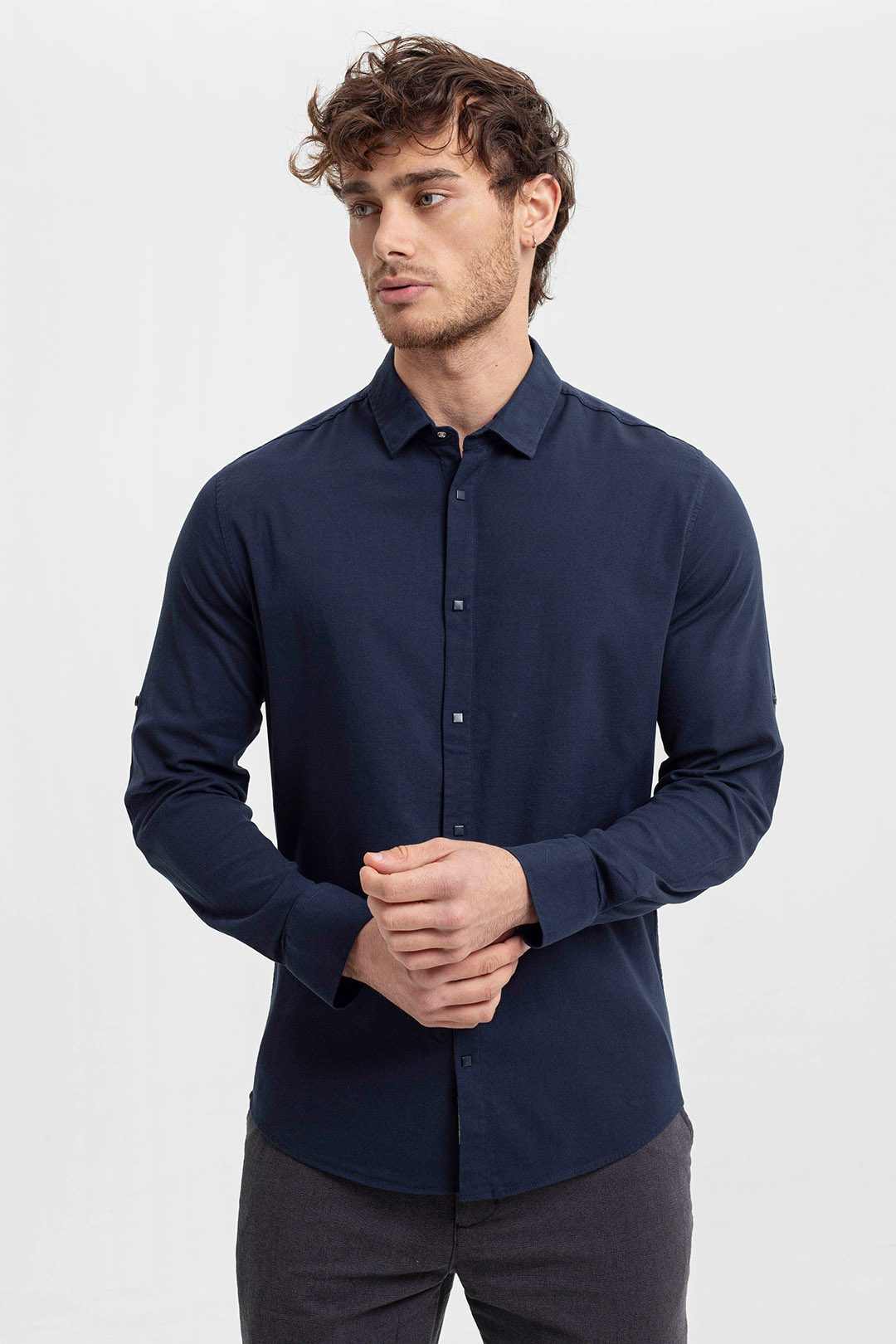 - Tamsiai mėlynos spalvos vyriški marškiniai Grati