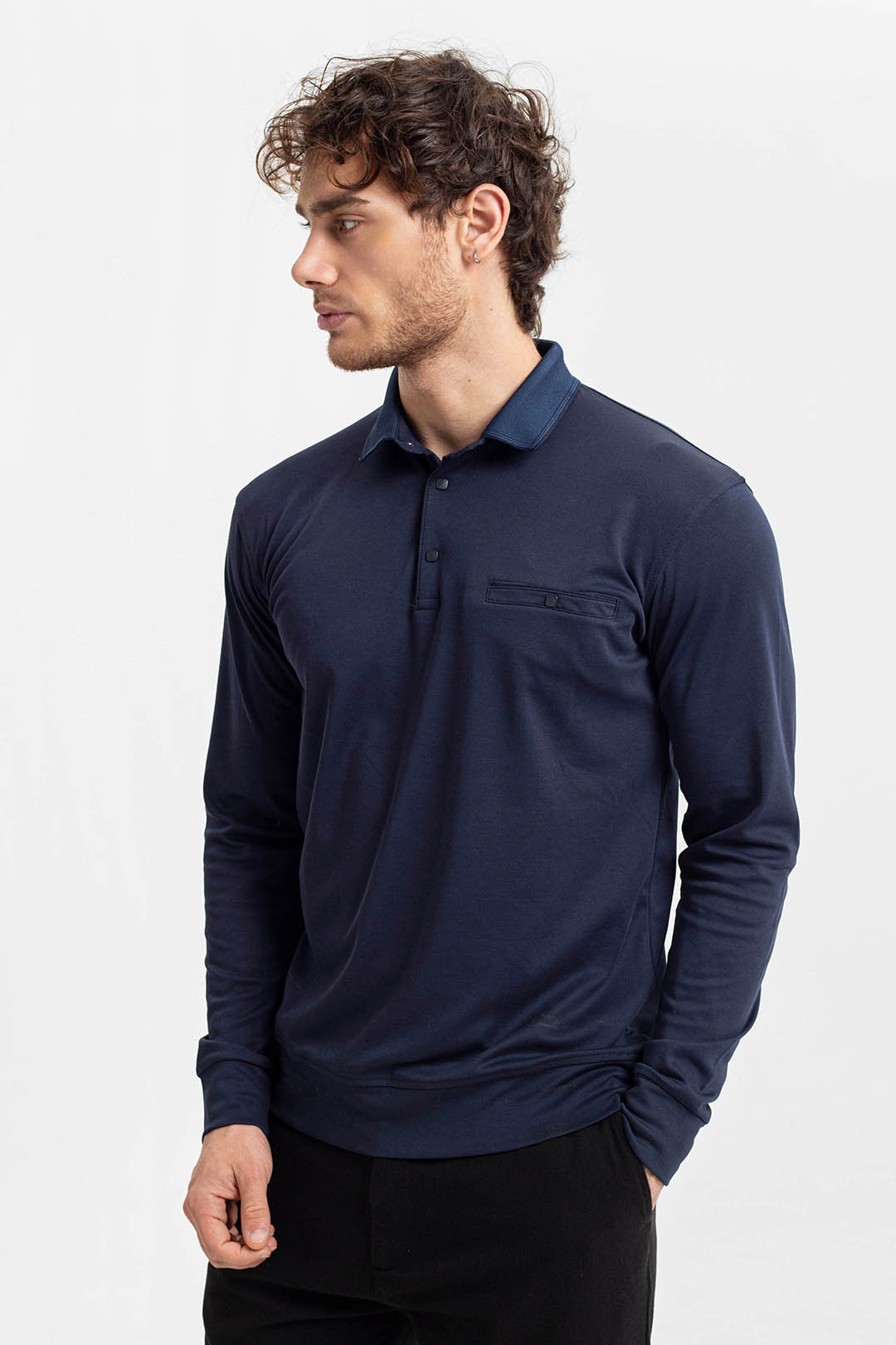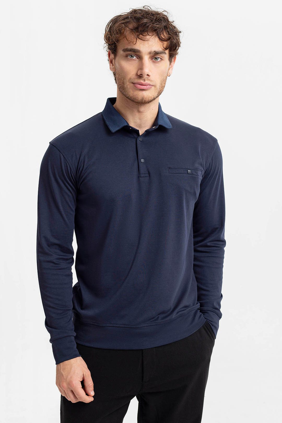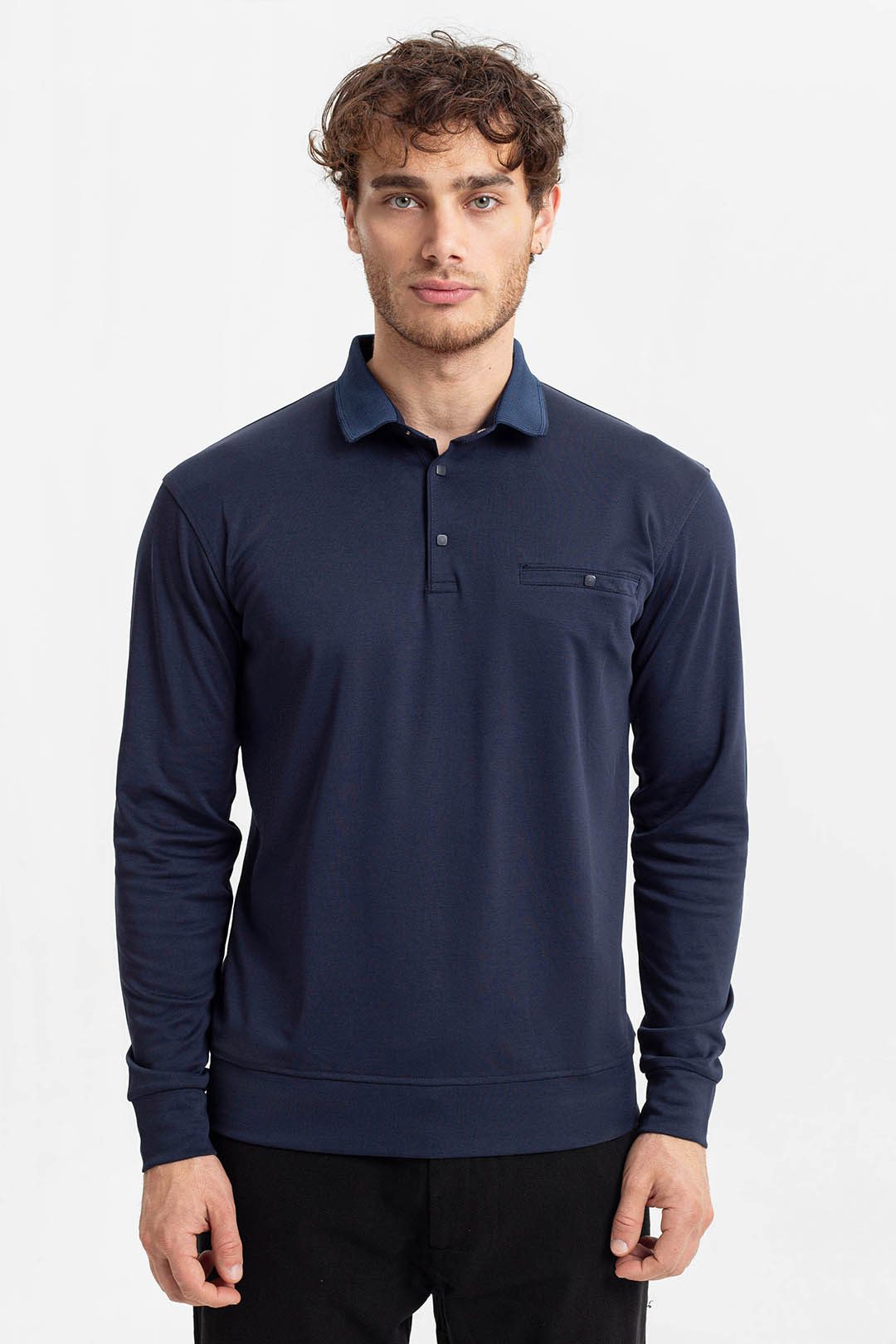 - Tamsiai mėlynos spalvos vyriški polo marškinėliai Kabelo