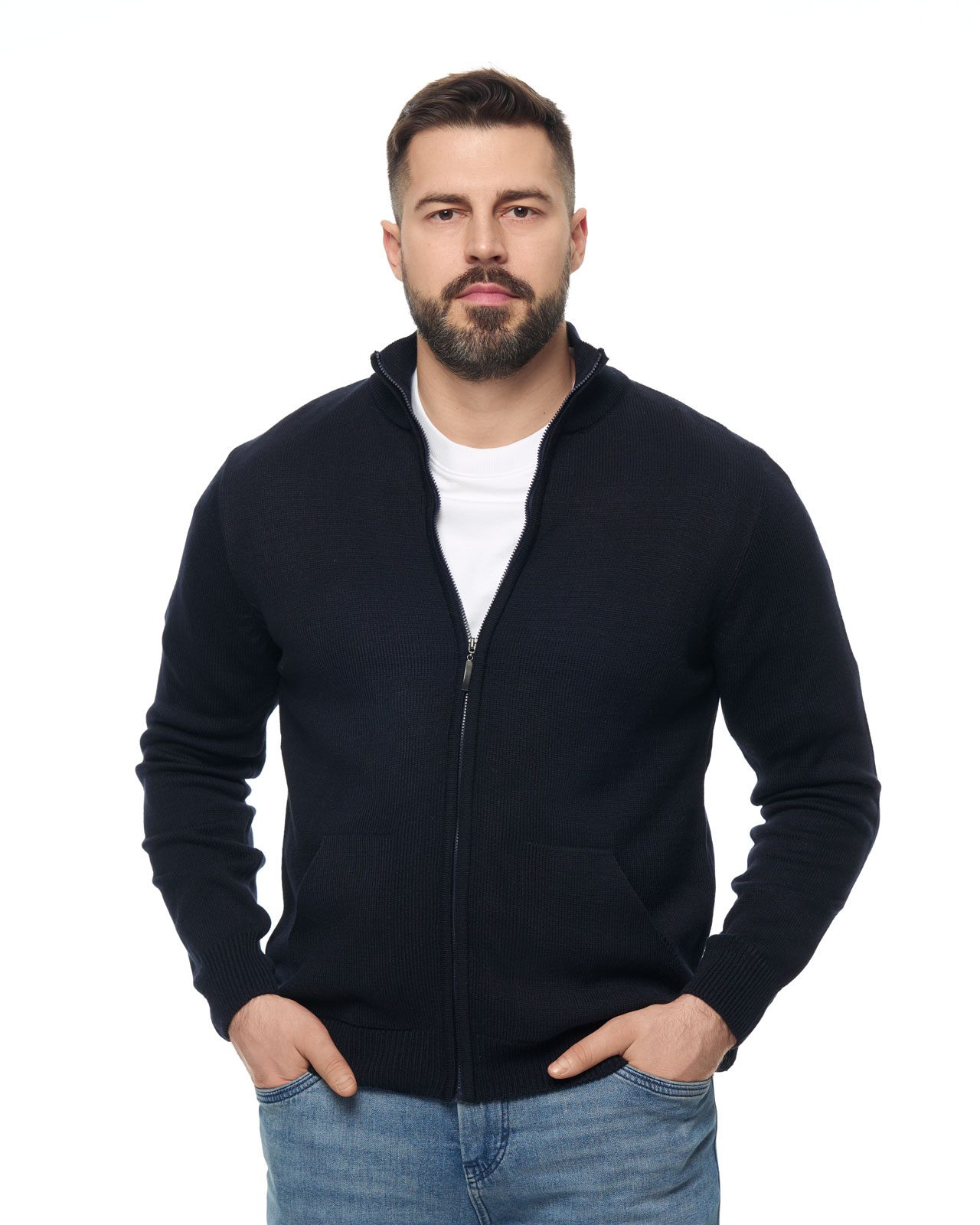 - Tamsiai mėlynos spalvos vyriškas megztinis su užtrauktuku Rafiq